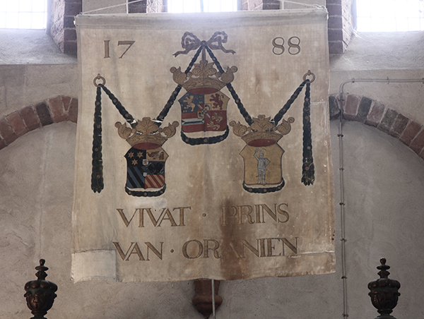 Bijzonder is ook een zogenaamd Oranjevaandel of Prinsenvlag uit 1788, hangend boven de zuidelijke ingang, waarvan er nog enkele over zijn in Nederland . De roerige periode rond het jaar 1788 stond bekend als de patriottentijd.
